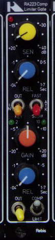 The Rebis RA223 Comp-Limiter-Gate is one of the many modules available for the Rebis Rack Effects system based on the Vero card frame system.