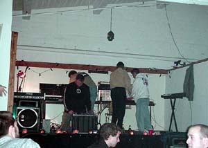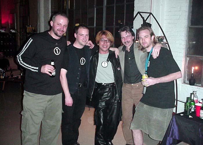 Matt Wilson (Odyssey Sound), ??, Mickey (DrumMachine Museum), Jurg (Technosaurus), and Link Porterfield (Art Gravity) ham it up for the camera.