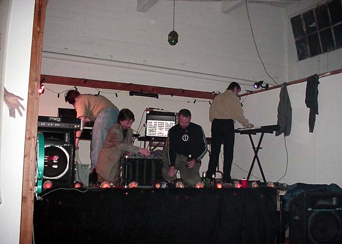 Cary Roberts (Retrosynth), Jurg (Technosaurus), Matt Wilson (Odyssey Sound), and John Van Nest (Jomox) still filling the room with sound.